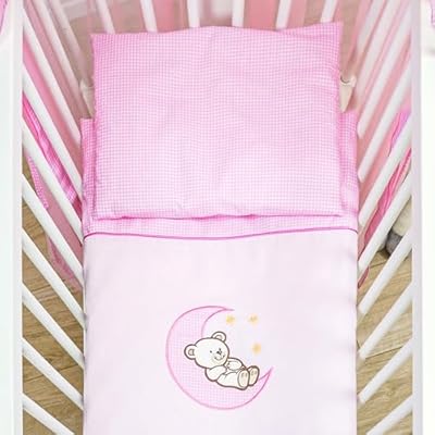 4 Piece 80×70 cm Duvet & Cover with Pillow & Pillowcase Bedding Set for Baby Crib (Moon Pink)