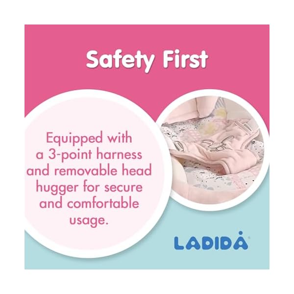 The bouncer also comes with three plush toys and a removable head hugger to keep the baby comfortable and safe.