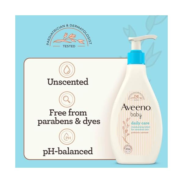Aveeno Baby Daily Care Moisturising Lotion is formulated to minimise the risk of allergies, and is suitable for newborns. This fast absorbing lotion can be used every day to help your baby’s skin soft, smooth and feeling healthy. Now with 60% fewer ingredients, Aveeno Baby Daily Care Moisturising Lotion has a lighter feel, and is suitable for face and body. It is pH balanced, unscented and dye-free. The Aveeno Baby Range is made from carefully select high quality oats to preserve their protective, moisturizing and soothing properties. [PR-3664] Aqua, Glycerin, Distearyldimonium Chloride, Petrolatum, Isopropyl Palmitate, Cetyl Alcohol, Dimethicone, Avena Sativa (Oat), Kernel Flour, Allantoin, Sodium Chloride, Tocopherol, Benzyl Alcohol * Product and ingredients may change. Always check the label before purchasing and using this product. Apply onto clean baby skin. Use every day to help keep your baby’s skin soft, smooth and feeling healthy. For a complete routine, use with AVEENO Baby Daily Care Hair & Body Wash.