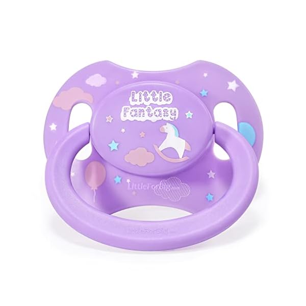 IMPROVEMENTS from BIGSHIELD PACIFIERS. New shape to match a popular baby pacifier, Larger button for easier DIY decorating, Clear silicone nipple, Innovative dust cap to keep good hygiene, designed with medical grade plastic. LITTLEFORBIG EXCLUSIVE DESIGN – Printed Little Fantasy Character Pattern.