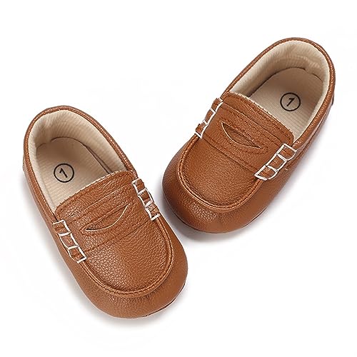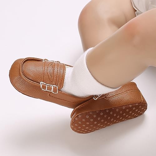 Caziffer Baby Boys First Walking Shoes Loafers Soft Slip-on Crib Shoes Anti-Skid Prewalker Leather Shoes for Infants