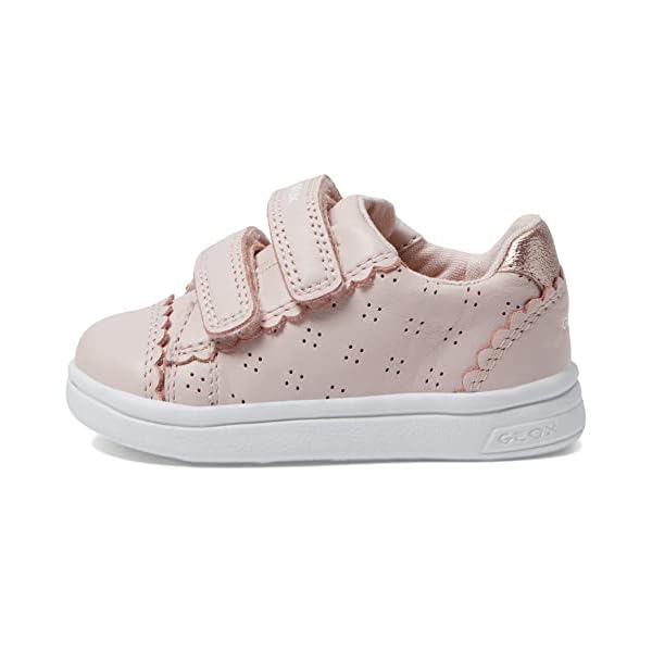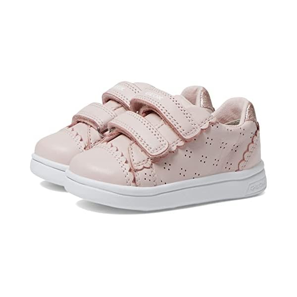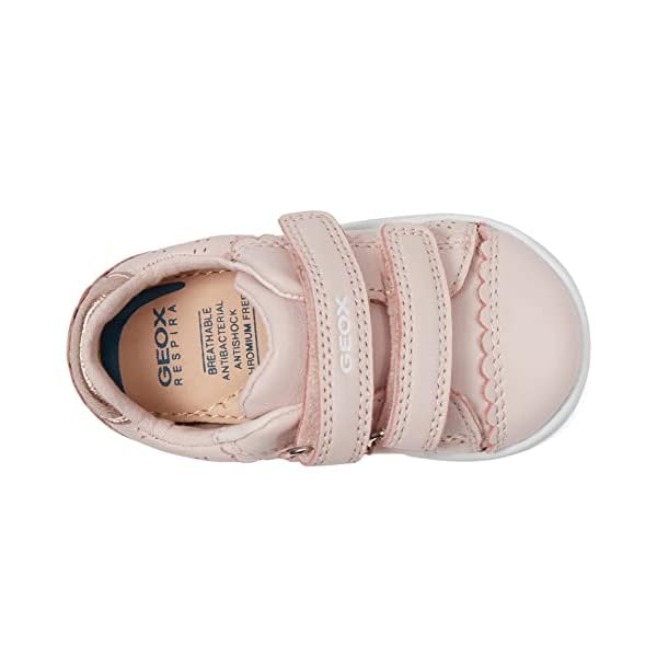 Djrock is a lightweight breathable low-cut sneaker for baby girls crafted from supple nappa and a glittery leather-effect material. Romantic and loaded with feminine appeal, it is a wonderful combination of irresistible cuteness and supreme comfort. – The patented Geox systems guarantee breathability of the outsole, ensuring the foot enjoys a sensation of wellbeing. – Footwear that offers optimal cushioning and protection against impact and stress. – The tread with built-in Flexy System offers excellent flexibility. – Lightweight footwear for greater freedom of movement. – Easy to wear, for unparalleled comfort. – Footwear with non-marking outsole. – Ultra quick to put on, thanks to the riptape fastening. – Removable insole.