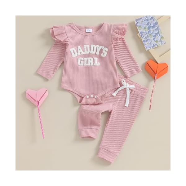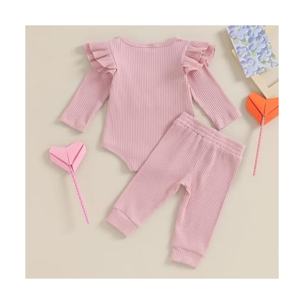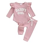 Baby Girls 3Pcs Fall Outfits Long Sleeve Ribbed Romper + Pants + Headband Set Infant Clothes