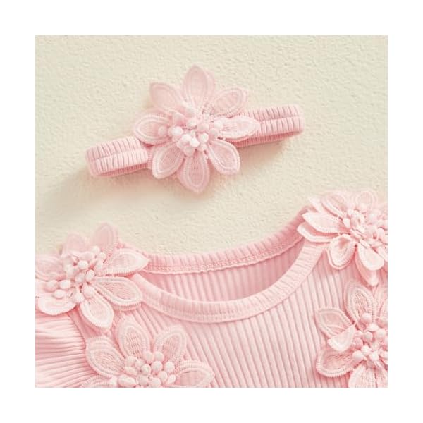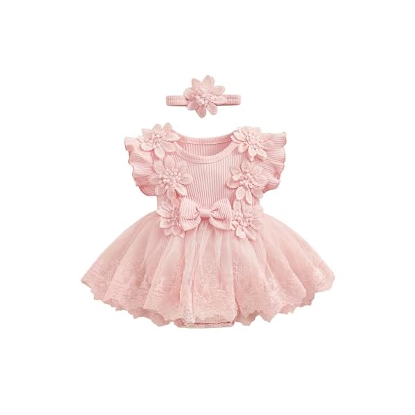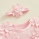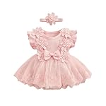 Baby girl summer romper, baby girl romper dress, round neck, 3d flower, mesh lace patchwork, ruffle design, and cute hairband set, your little one wearing it will receive a lot of compliments.