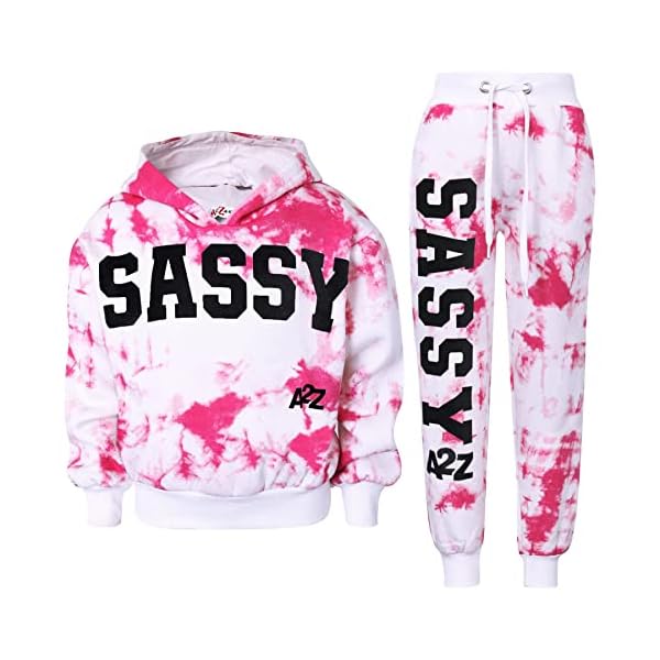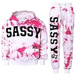 Thanks to the high quality soft blended 65% polyester, 35% cotton your child will feel cool enough for the ultimate comfort. Featuring a tie dye cropped hoodie with cuffed sleeves and a hood, and SASSY printed across the front, and matching joggers with an adjustable drawcord waist and cuffed at the ankles, and SASSY printed down the front of a leg.