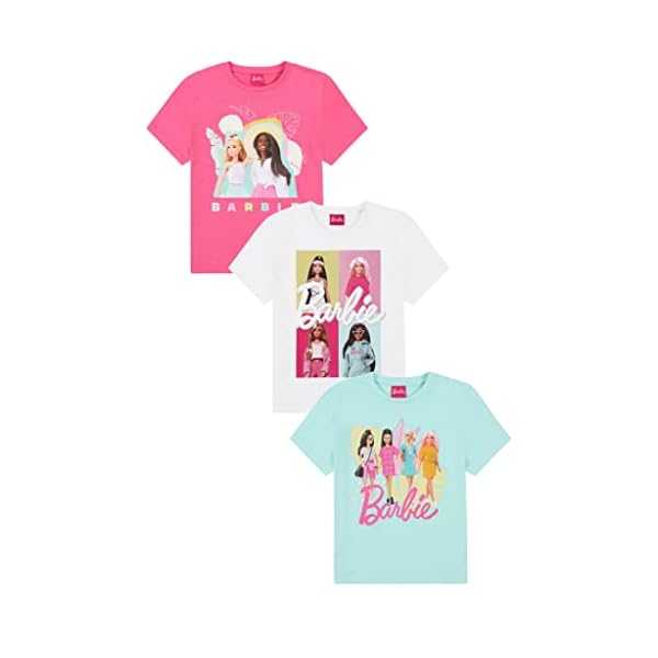 Barbie 3 Pack Girls T-Shirts – This multipack comes with 3 short sleeved t-shirts made from 100% soft cotton each with a stunning design perfect for Barbie fans