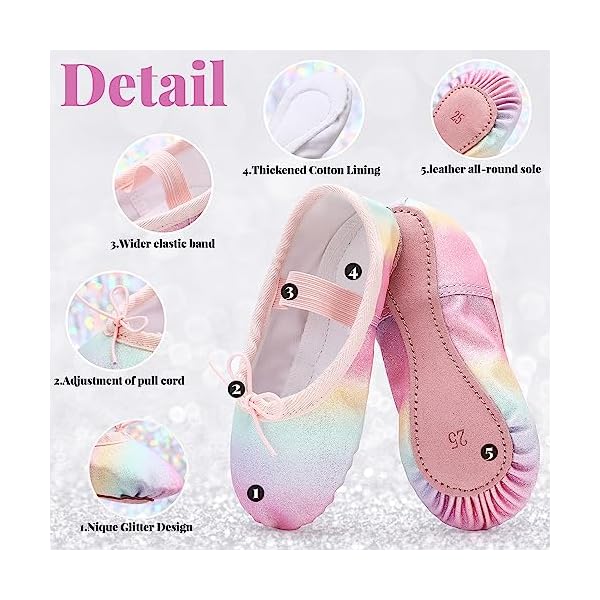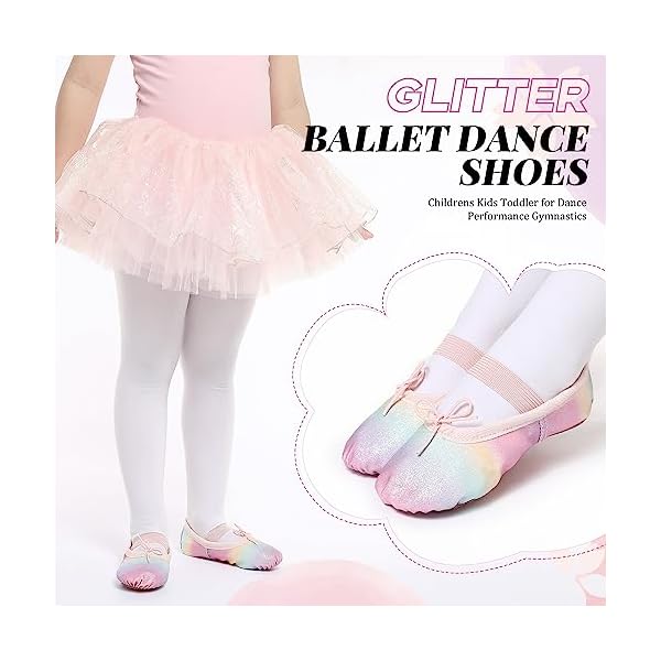 Ballet Shoes for Girls Glitter Ballet Dance Shoes Leather Dance Slippers Full Sole Ballet Dance Flats for Childrens Kids Toddler for Dance Performance Gymnastics