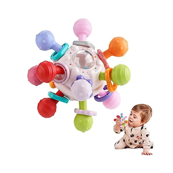 Baby Chew Toys: Baby teether is high heat resistance, can be sterilized by boiling water or steam, which is safe to use and safe for baby to chew on. Baby activity play center, shaking this activity ball, toddlers delight with it.