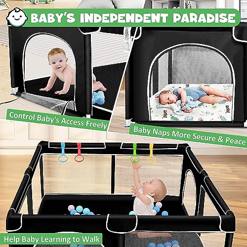 Baby Playpen Toddler Fence with Breathable Mesh and Zipper Door Playard with Anti-Collision Foam 4 Pull Rings and 50 Balls Indoor & Outdoor Kids Activity Center (127x127x66CM)