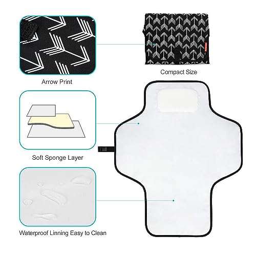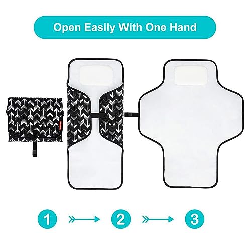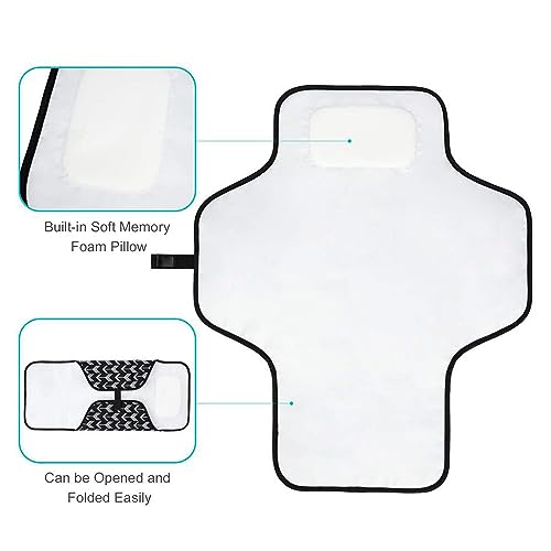 BABEYER Nappy Changing Mat, Large Travel Portable Changing Mat with Head Cushion for Home Travel Outside, Black