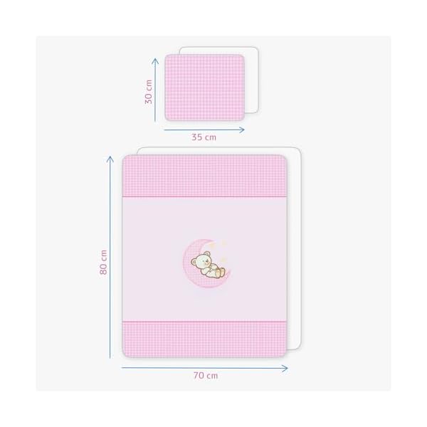💙 This baby bedding set was designed to fit crib, cradle or pram: duvet & duvet cover – 80×70 cm, flat pillow & pillowcase – 30×35 cm