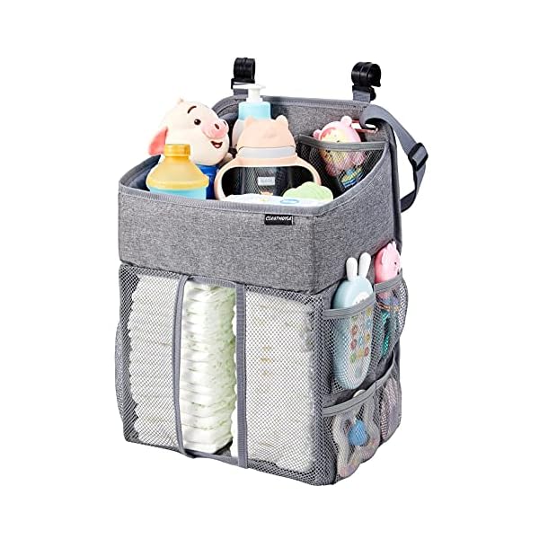 Clearworld Hanging Diaper Caddy Organizer,Diaper Stacker and Crib Organizer,Upgrade Thicken Nursery Organizer for Changing Table, Crib, Wall & Bassinet, Baby Essentials Storage (Gray)