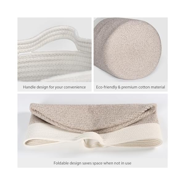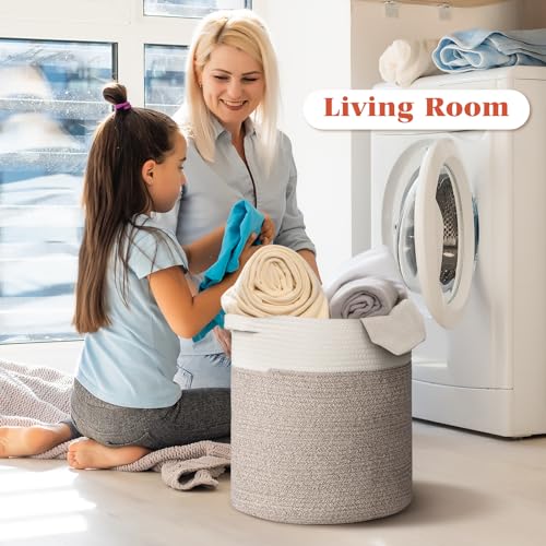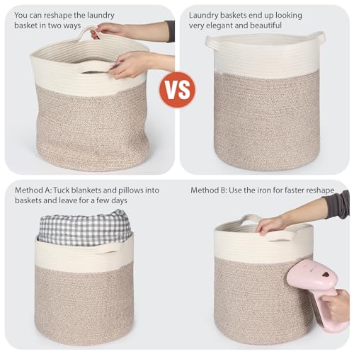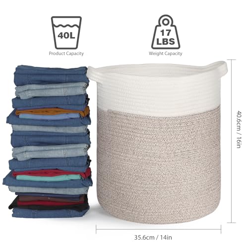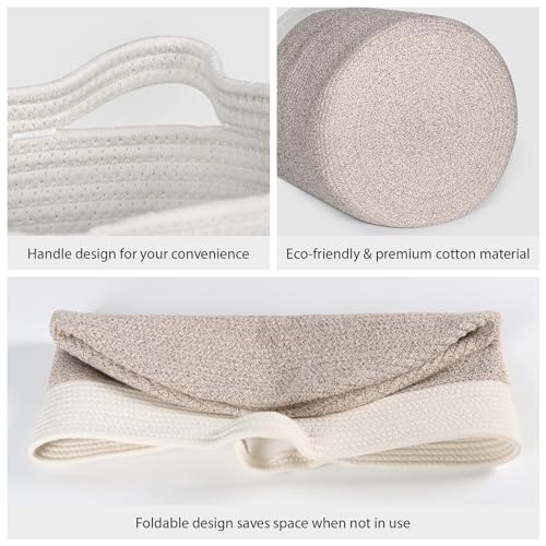 Univivi Large Woven Laundry Basket, Toy Storage Basket for Kid, 40L Blanket Basket Foldable Rope Basket, Nursery Decor Laundry Washing Basket with Handle, White & Desert (35x40cm)