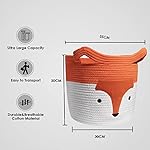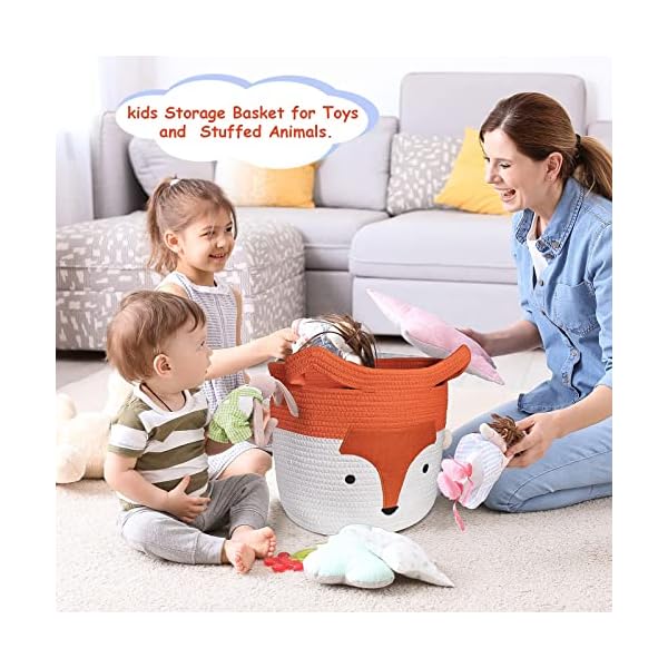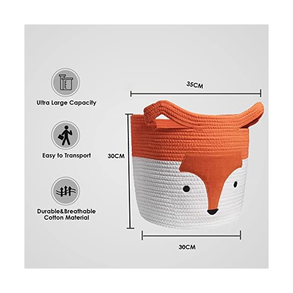 Woven Rope Basket, Laundry Basket Kids, Toy Storage Basket, Cartoon Fox Face Laundry Hamper Nursery Storage Basket for Kids, Pets Storage Organiser for Toys, Clothes, Orange and White (35*30*30cm)