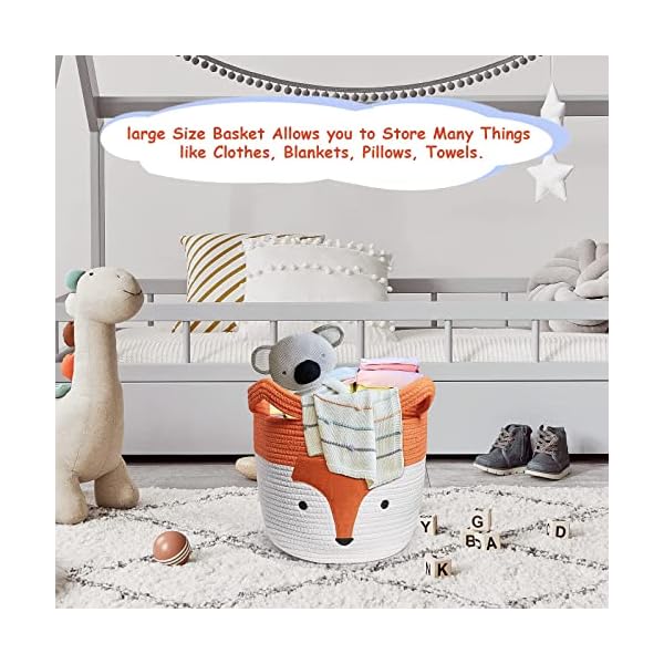 🐱MULTIPLE USE BASKET: This animal cartoon woven basket can use for kids toy storage basket and stuffed animals, book storage basket, baby nursery basket to hold baby blankets, diapers, or clothes, dirty clothes hamper; Also can be a basket to storage cat/ dog toys and foods, or as a cat bed.