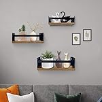 Giftgarden Black Floating Shelves for Wall Set of 3, Industrial Thick Wall Shelves with Iron Rails Brackets for Bathroom Storage Kitchen Spice Rack Bedroom Living Room Plant Nursery Books Laundry