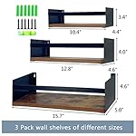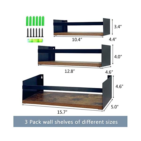 Easy to Install: Come with necessary hardware, leveler and instructions included, installing these shelfs for walls will be a breeze for you. 3 pack shelfs vary in sizes, large shelf: 15.7x5x4.6 inches, medium shelf: 12.8×4.6×4 inches, small shelf: 10.4×4.4×3.4 inches.