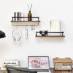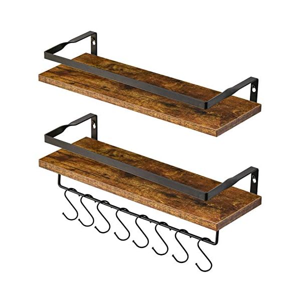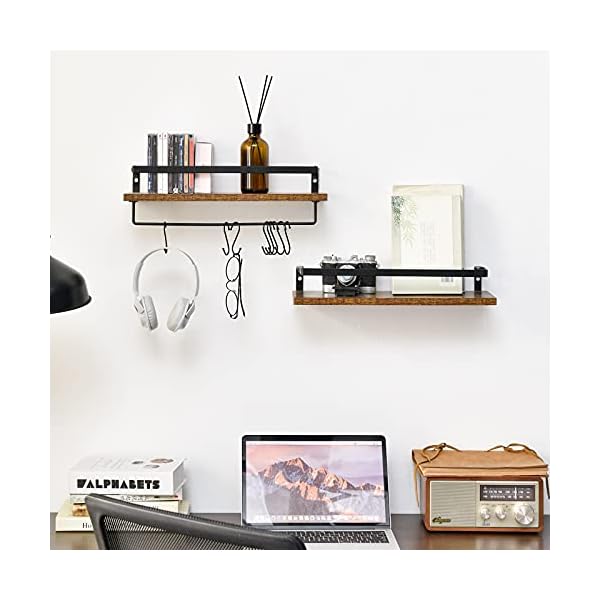 PREMIUM STORAGE SHELVES: Floating shelves are made of high-quality rustic particleboard and metal. It’s easy to clean. Metal structure design with towel holders and hooks, durable, bearing capacity strong. It perfect for bedroom,living room, office.