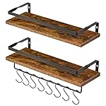 IBUYKE Floating Shelves, Wall Shelf Outdoor, 42x15x8 cm, Shelving Unit for Wall, Towel Holder 8 hooks, Kitchen Spice Rack, Storage Organiser Shelf for Bedroom, Bathroom, Living Room, Office RF-TM008S