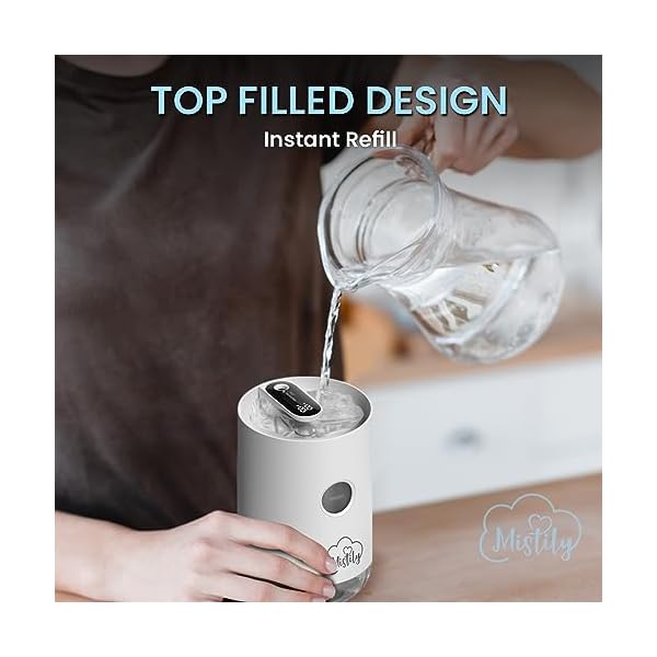 【IMPORTANT MESSAGES】Mistily single room humidifier does not work with essential oils! It is only a humidifier and not a diffuser, Only use spring or tap water, Do not use distilled or purified water, it will block the atomizer!