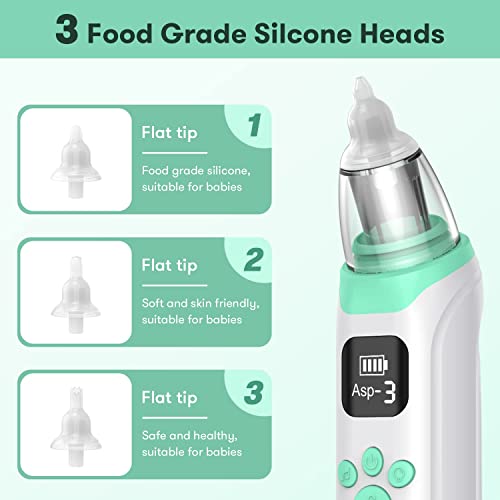 【Safe and Healthy】Our nasal aspirator baby is accord tested safety suction standards that can meet the needs of infants and young children. Medical-grade reusable nozzles, soft silicone, gives your baby a safe and hygienic nose cleaning. (Tips: Before using our Electric Nasal Aspirator, please using a Saline Spray to soften stubborn boogies for 30 seconds to one minute.)
