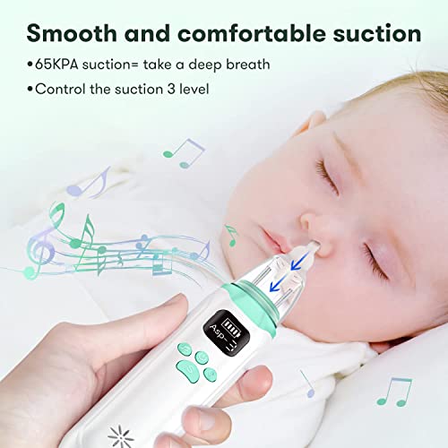 DIHOOM Nasal Aspirator Baby, Electric Nose Sucker, Rechargeable Cleaner with 3 Suction Levels and Silicone Nozzles Anti-Backflow, Unblocker Built-in Music for Newborns, Toddlers
