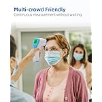 ✅【High temperature/ fever warnings】If the thermometer gun registers a temperature reading that exceeds 38 degrees Celcius (100F), the digital thermometer will automatically sound an alarm and the screen will change colour to warn you Readings are accurate to within 0.3 degrees Celcius, so a high temperature warning is likely accurate the first time.