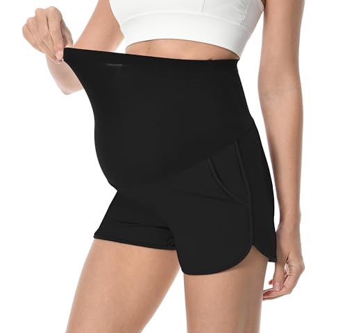 Foucome Maternity Shorts Over The Belly Lounge Pajama Workout Yoga Running Casual Pregnancy Shorts with Pockets