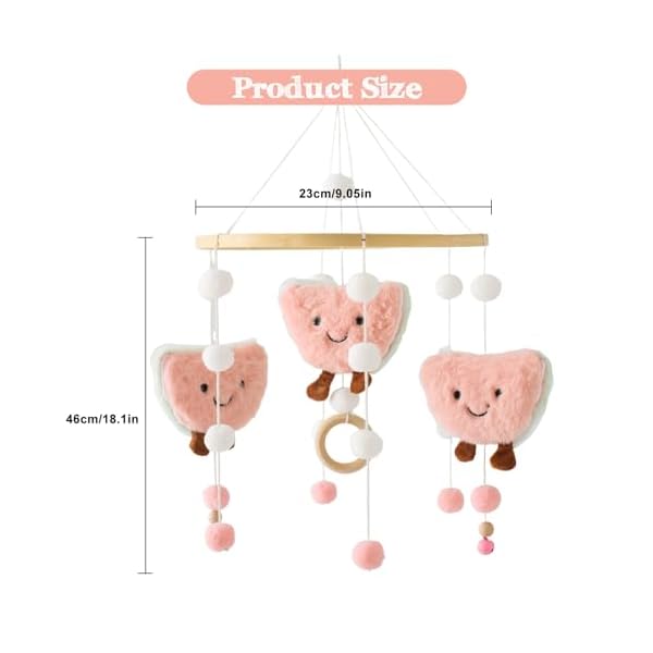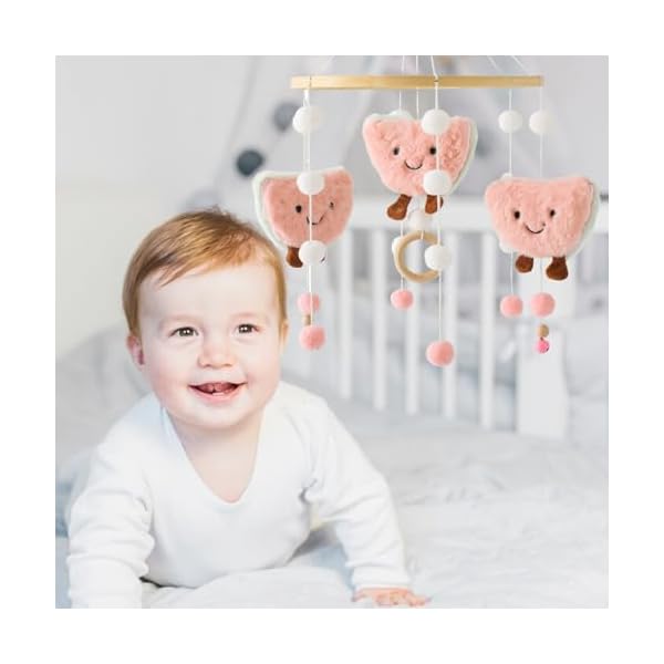 💕【Early Development Toy】The baby cot mobile is designed with hand-crocheted watermelon dolls and ball decorations. Our crib mobility devices not only capture the baby’s attention and stimulate the baby’s curiosity, but also develop the baby’s visual ability to evaluate color. When a baby plays with a mobile felt ball, it trains the baby’s physical dexterity and motor skills, such as grasping and pulling.