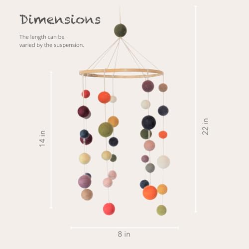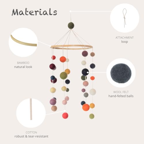 Gry & Sif Baby Mobile Made of Felt for Hanging Over the Cot or Playpen, Baby Gift, Baby First Equipment, Handmade, Fairtrade Colourful Felt Balls, Diameter 20 cm, Length 55 cm