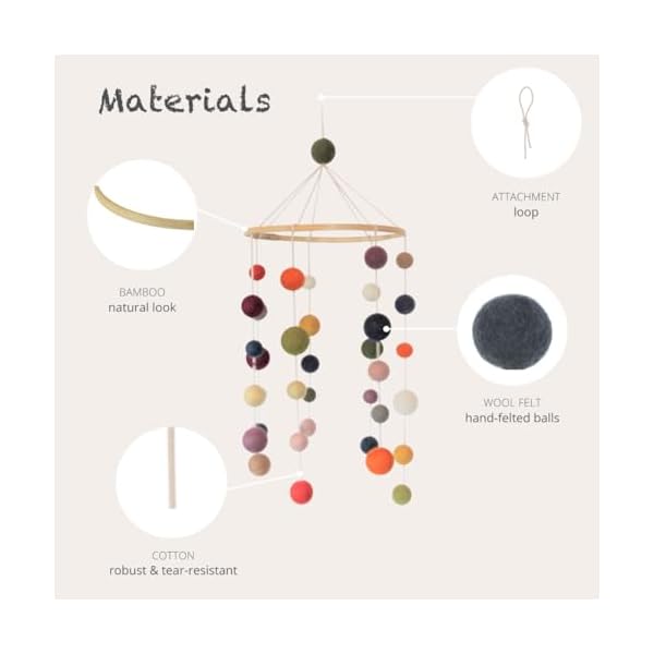 Cosmic discovery for the little ones: our baby mobile with felt balls in bright colours will take your child on a journey through the universe. The colourful balls remind of distant planets and stars and stimulate the imagination.