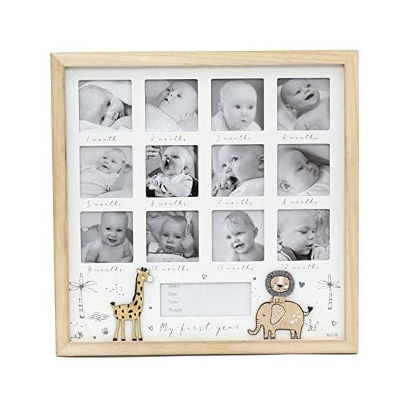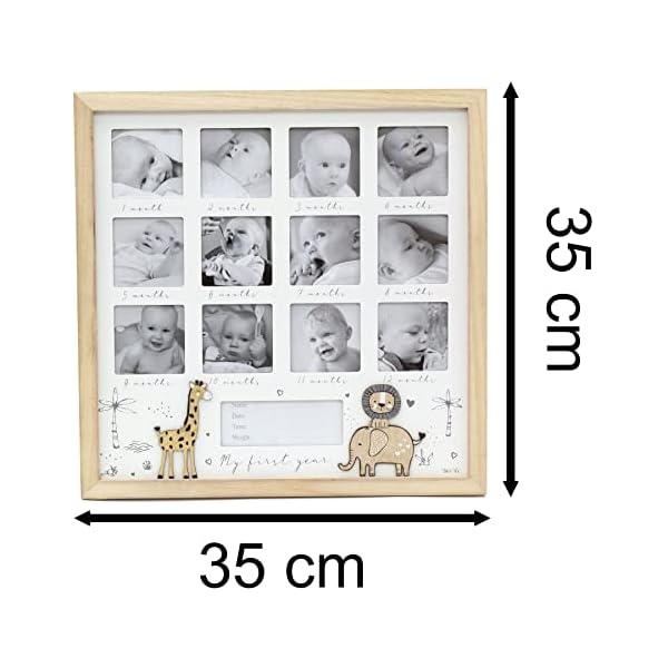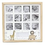 My First Year Keepsake Baby Photo Frame | Wooden Wall Mounted Newborn Baby Picture Frame | 12 Aperture New Baby Memories Photo Frame