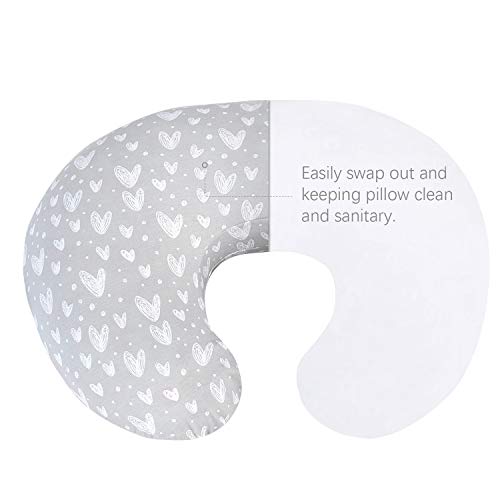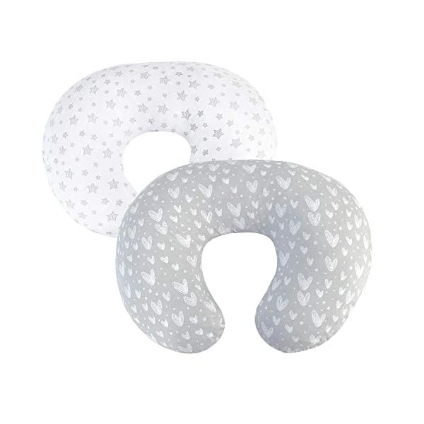 Nursing Pillow Covers (COVERS ONLY) 2 Pack, Stretchy 100% Jersey Cotton Soft Breastfeeding Pillowcases and Infant Nursing Pillow Covers,Fits For Chicco Boppy and Widgey Nursing Pillow, White & Grey