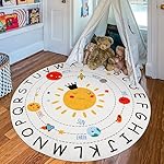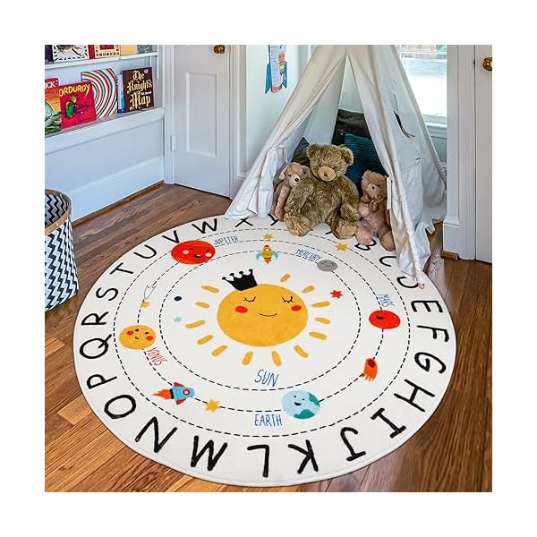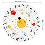 ABC Kids Play Rug 120CM Soft Plush baby play round rug,Non Slip solar system Alphabet Nursery area rug,Washable Classroom ABC nursery rug for Living Room Bedroom playroom classroom Kids Room Decor