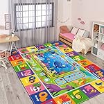 UPGRADE MATERIAL AND NON-SLIP DESIGN: Our kids play mat is made of premium flannel and high resilience sponge, the surface of the carpet has soft plush, Very soft and comfortable. This kids room rug with non-slip backing design, Through fine workmanship and multiple tests, the quality is guaranteed, keep your kids away from bumps, and knocks. Kids playmat offers your kids comfortable and ensures safety.
