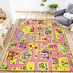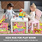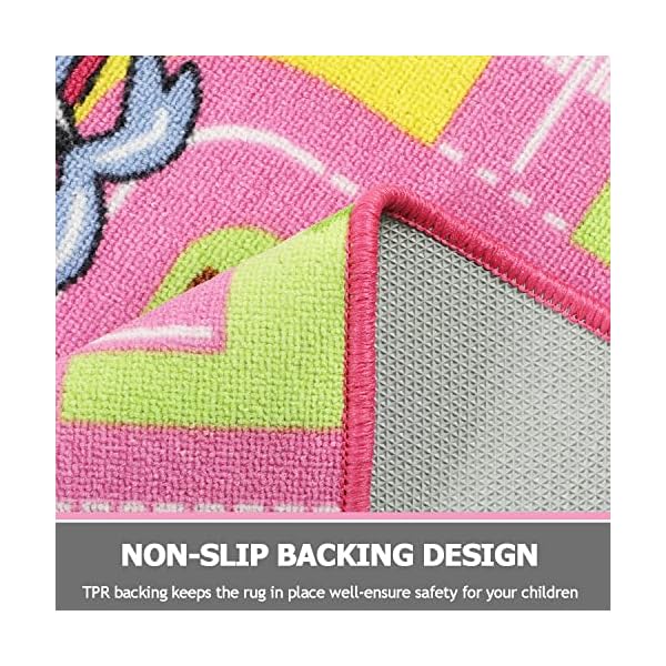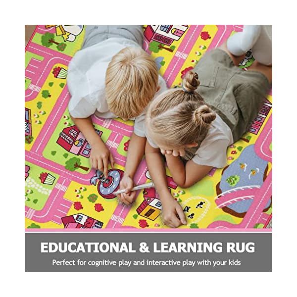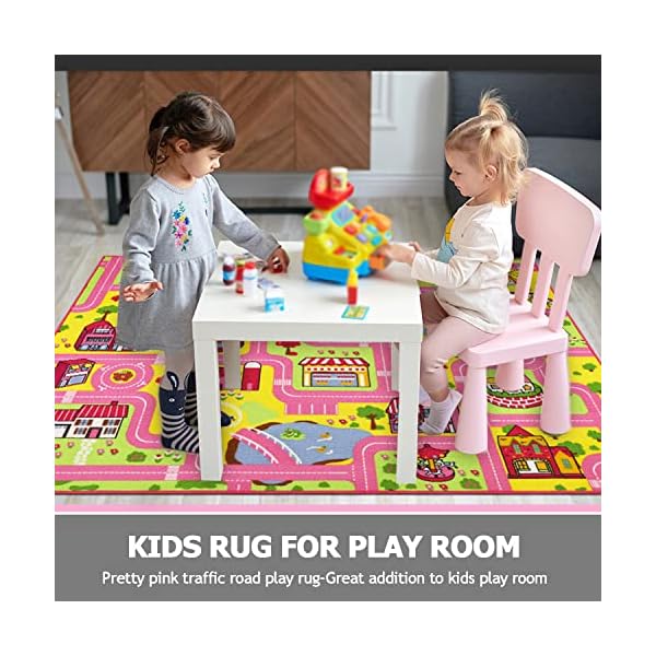 【Educational & Fun Pink Kids Rug】:Interesting traffic road map with nice pink color buildings,your girl will love learning and playing with friends,help kids explore fun and active approaches to learning and recognition.Great for girl’s bedroom,playroom,nursery room,classroom,living room,elementary school,preschool daycare kindergarten etc.
