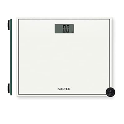 Salter 9207 WH3R Digital Bathroom Scales – For Body Weight, LCD Display, Instant Read Step On Technology, Max 150kg, Compact Design, Toughened Glass, 15 Year Guarantee, Includes 1 x CR2032 Battery