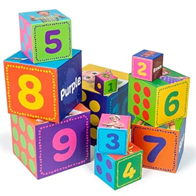 Cocomelon Stacking Block Puzzle For Toddlers Aged 18 Months And Up | Puzzle Game Contains 10 Stacking Blocks With Pictures And Numbers For Children