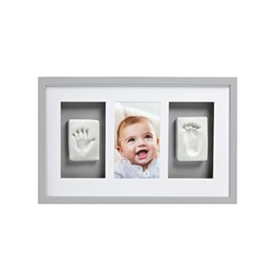 Pearhead Baby Hand and Footprint Deluxe Wall Photo Frame and No Bake Impression Kit, Baby Girl or Baby Girl Gift, Newborn Keepsake Kit, Baby Nursery Decor, Grey